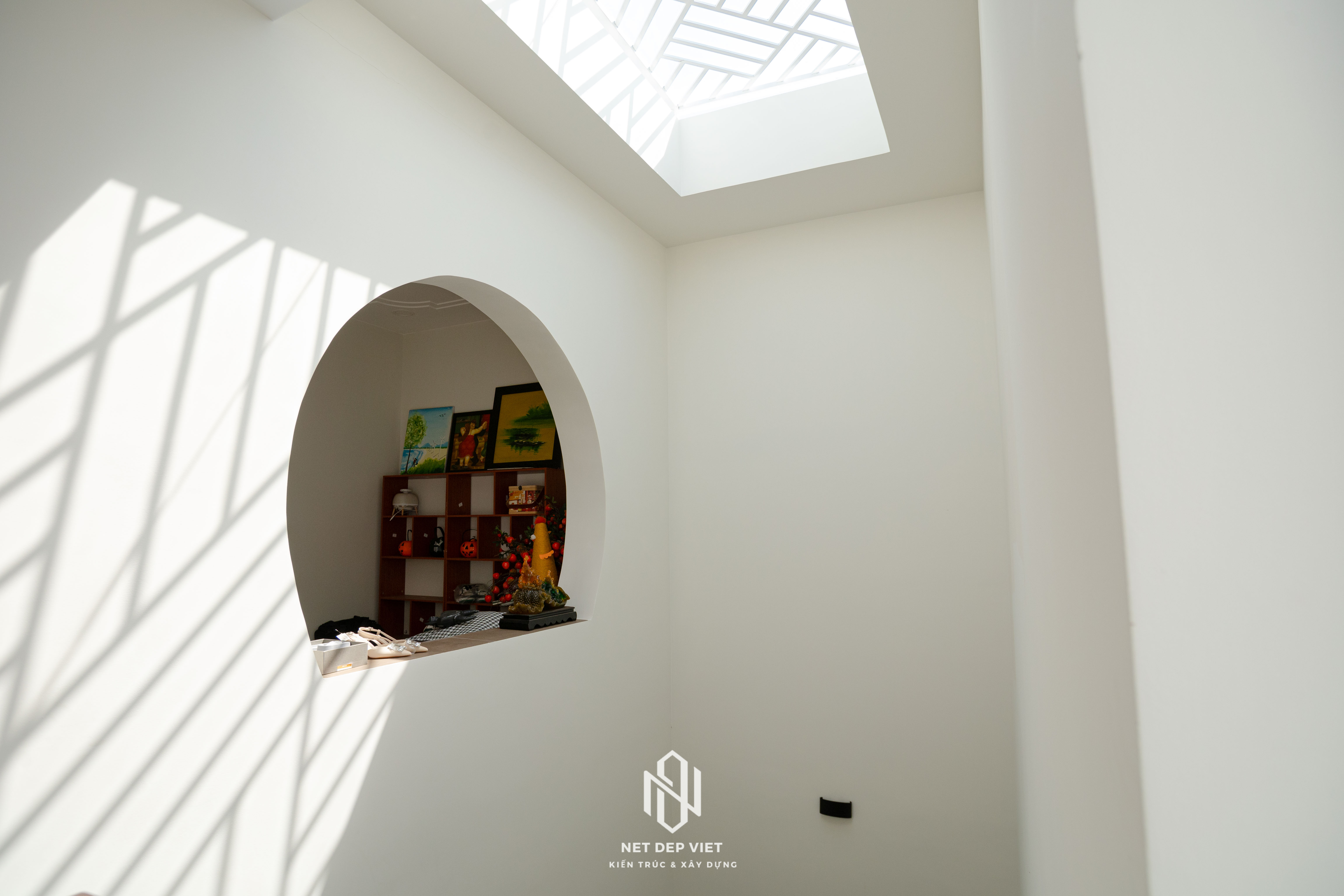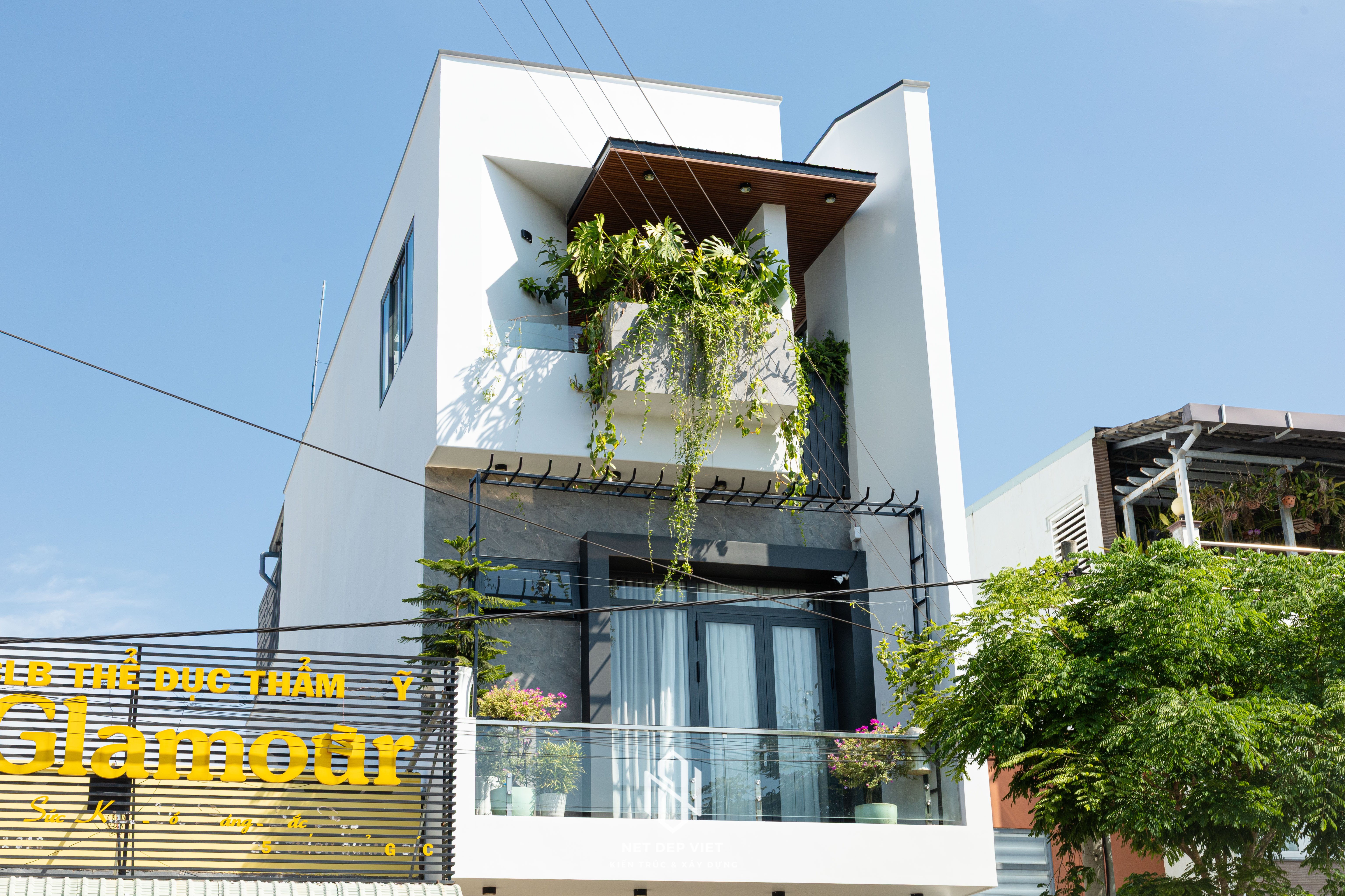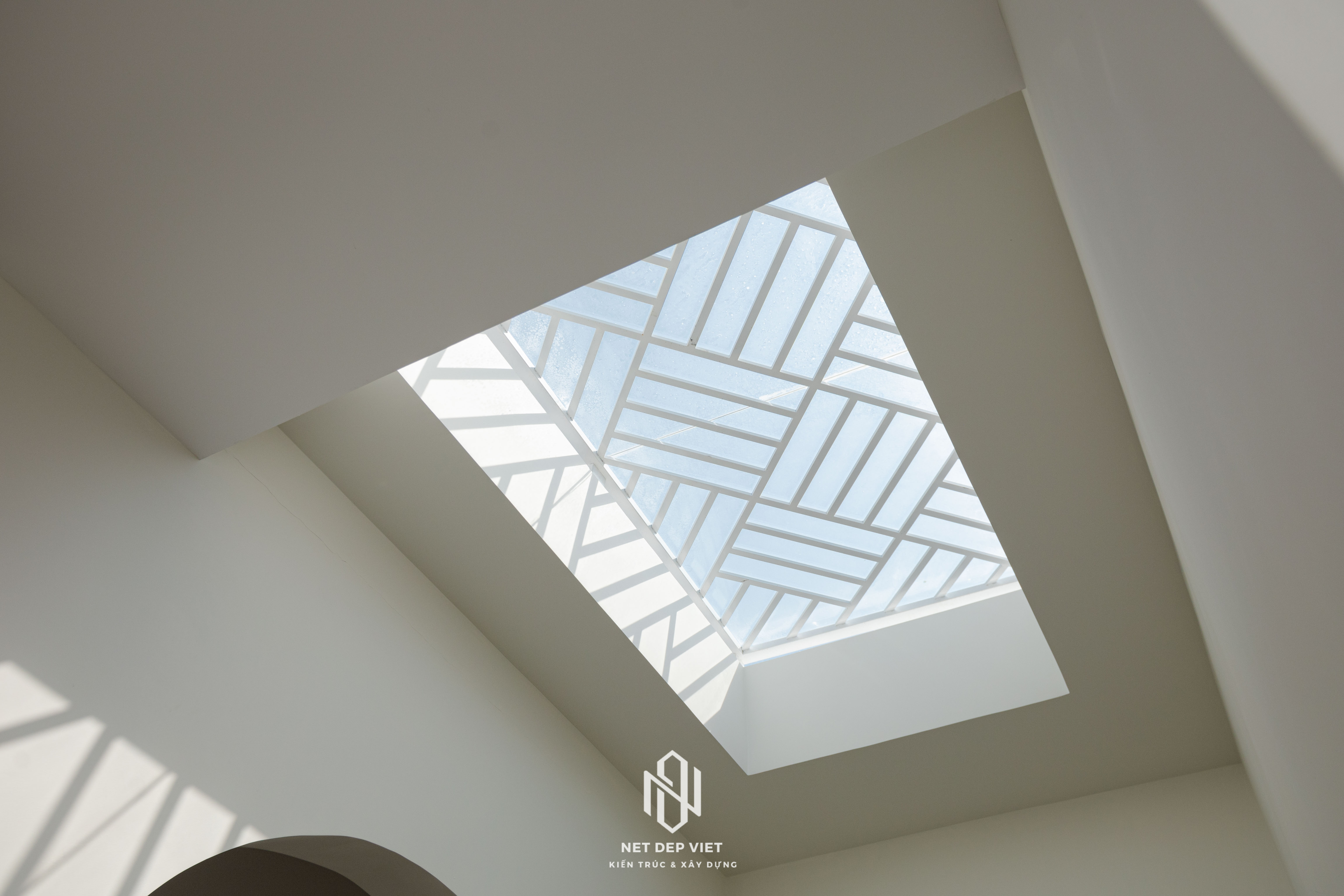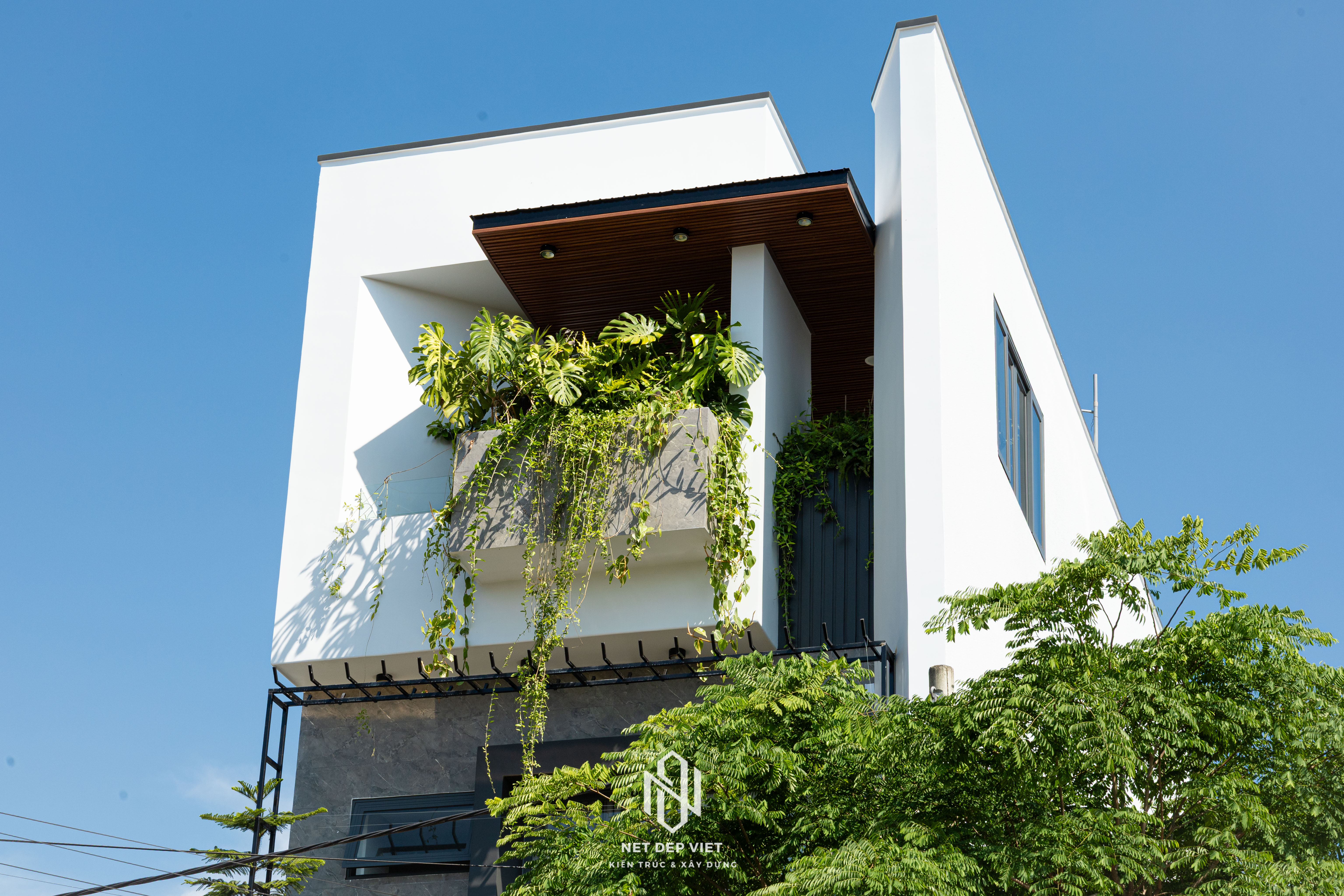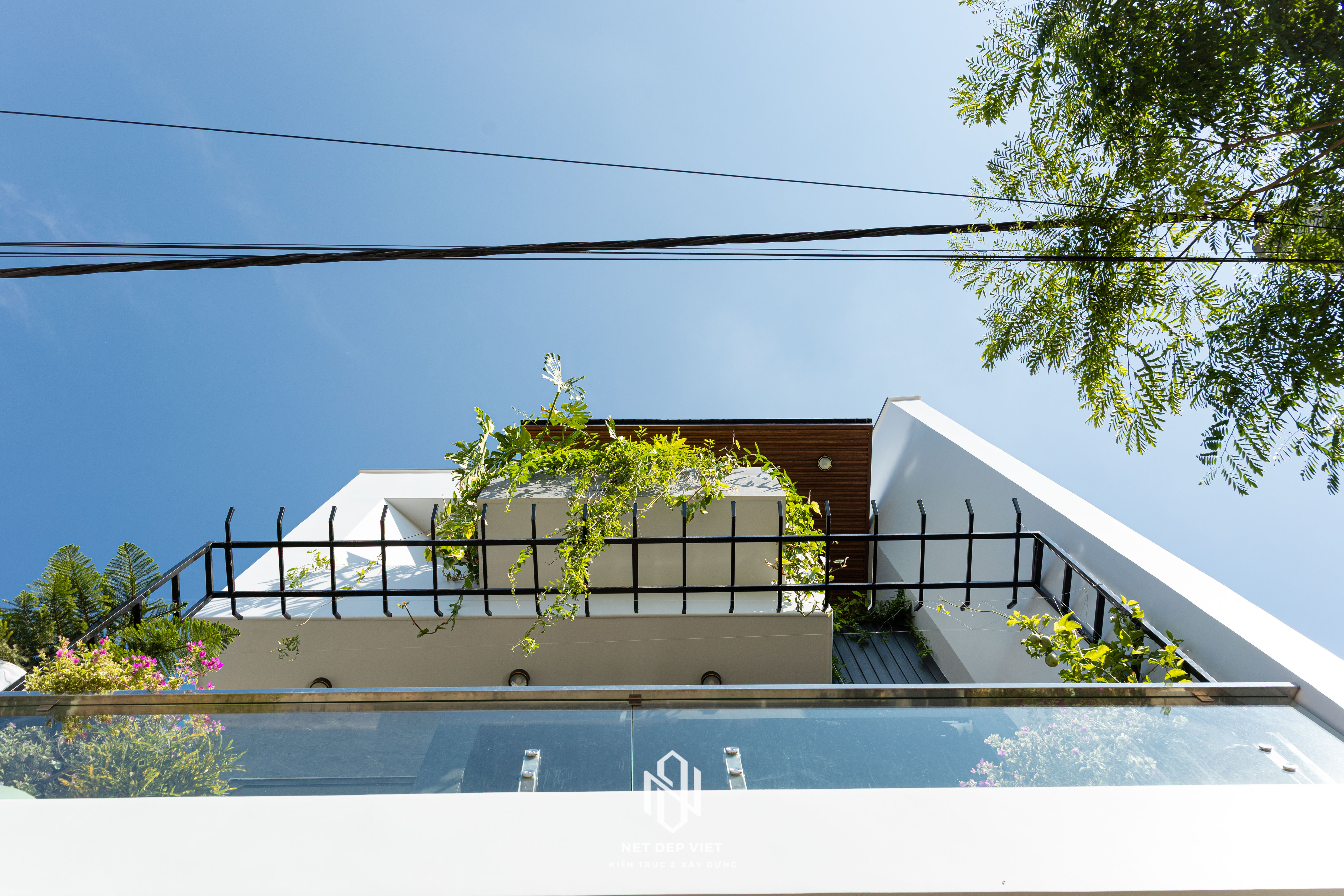 Mái vát cách điệu: Không chỉ là điểm nhấn thẩm mỹ, phần mái được thiết kế khoa học giúp thoát nước nhanh và chống nóng hiệu quả cho tầng thượng.