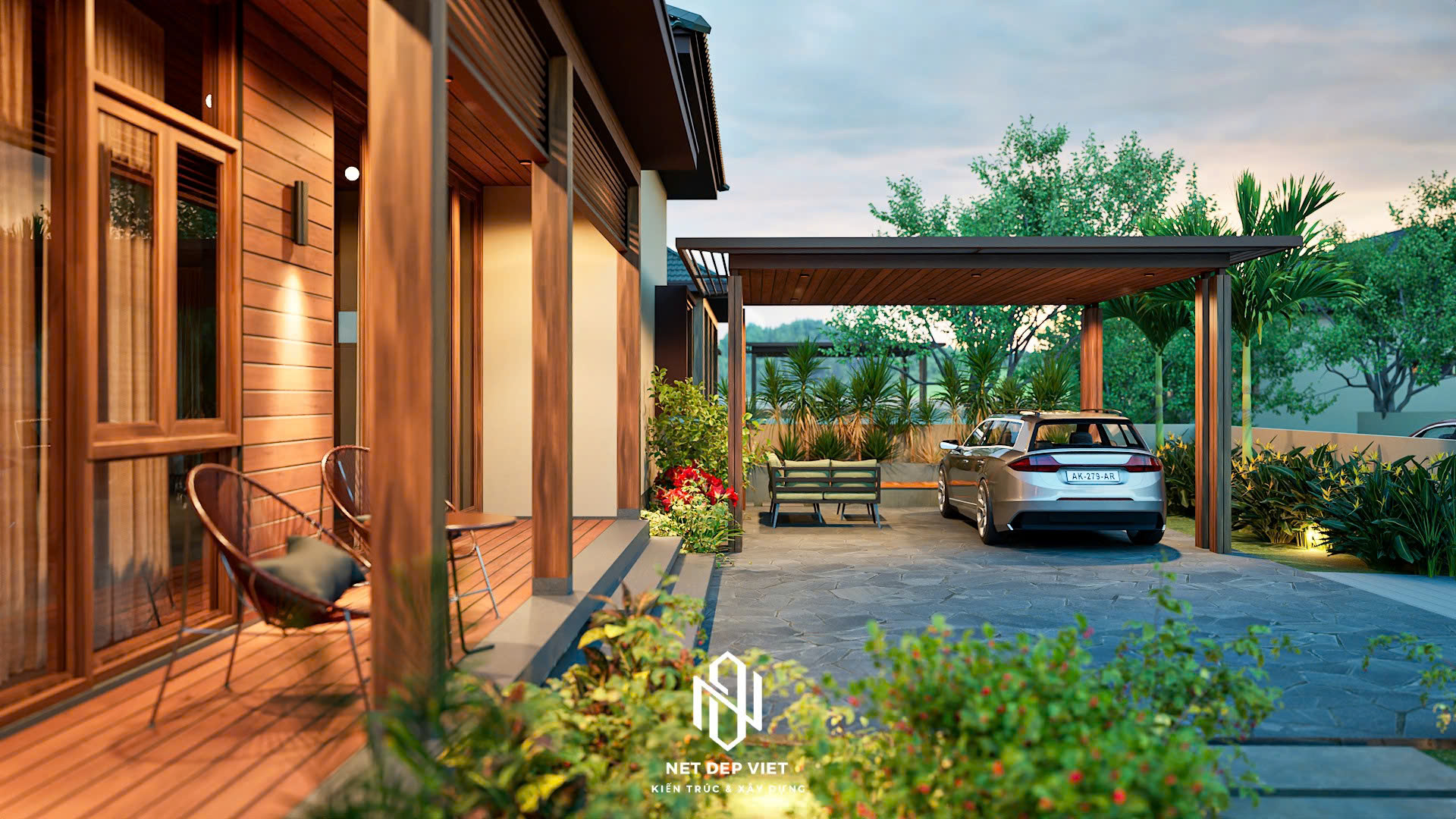Tiện ích tích hợp: Gara ô tô có mái che hiện đại được thiết kế liền kề, vừa thuận tiện trong sinh hoạt vừa đảm bảo tính thẩm mỹ đồng bộ