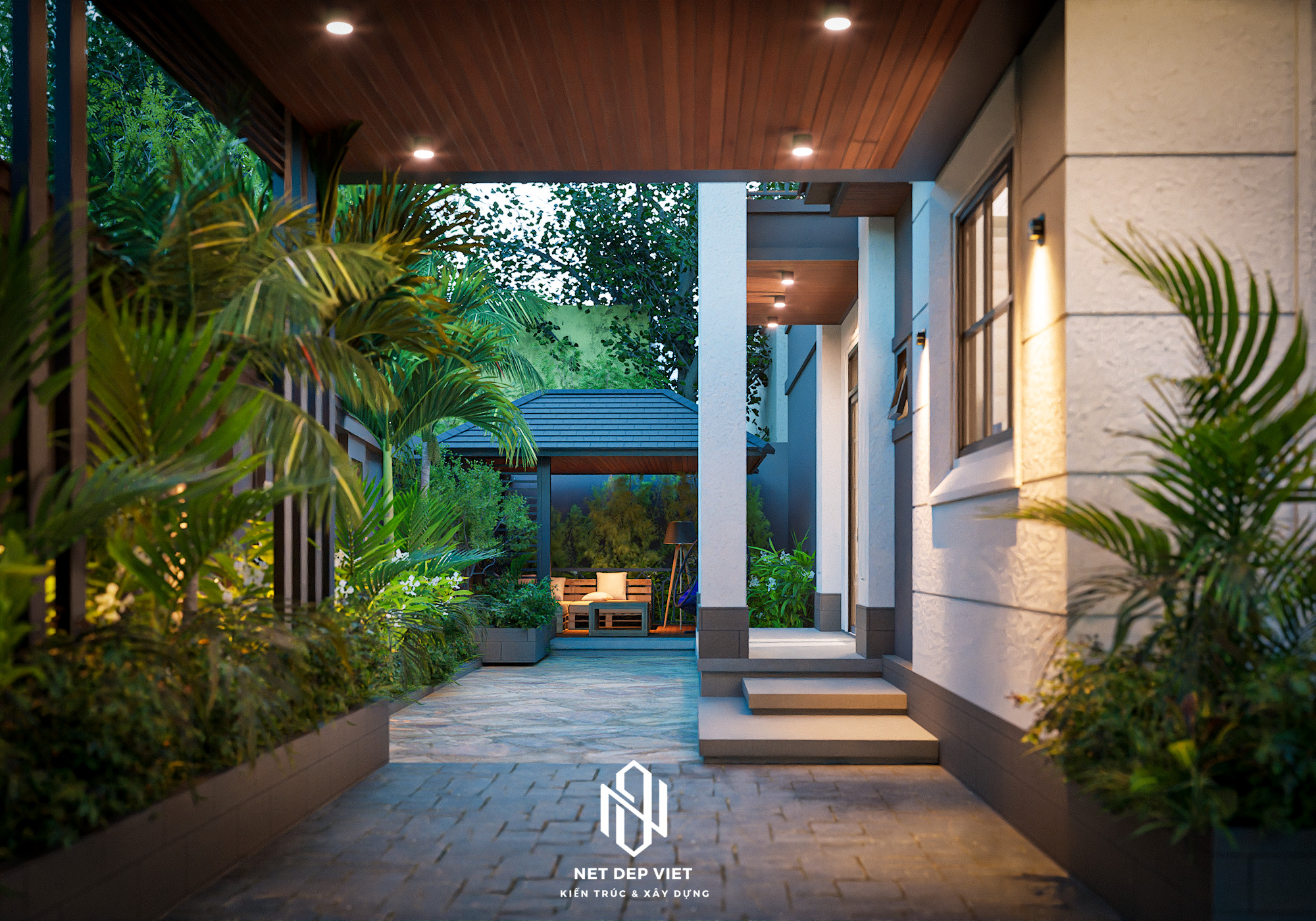 3. Quy hoạch sân vườn và Chòi nghỉ gỗ (Gazebo) – Điểm nhấn "Xanh"