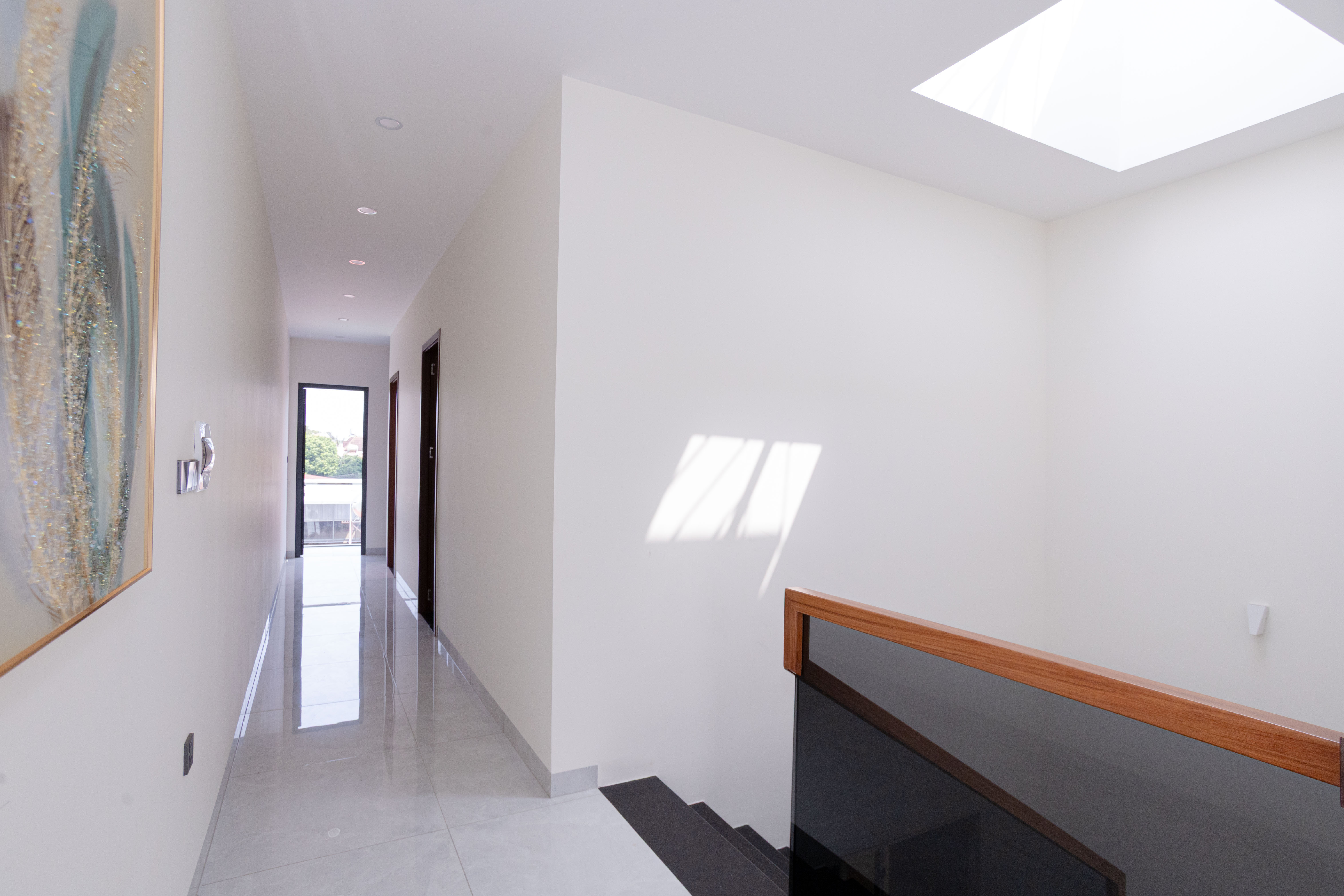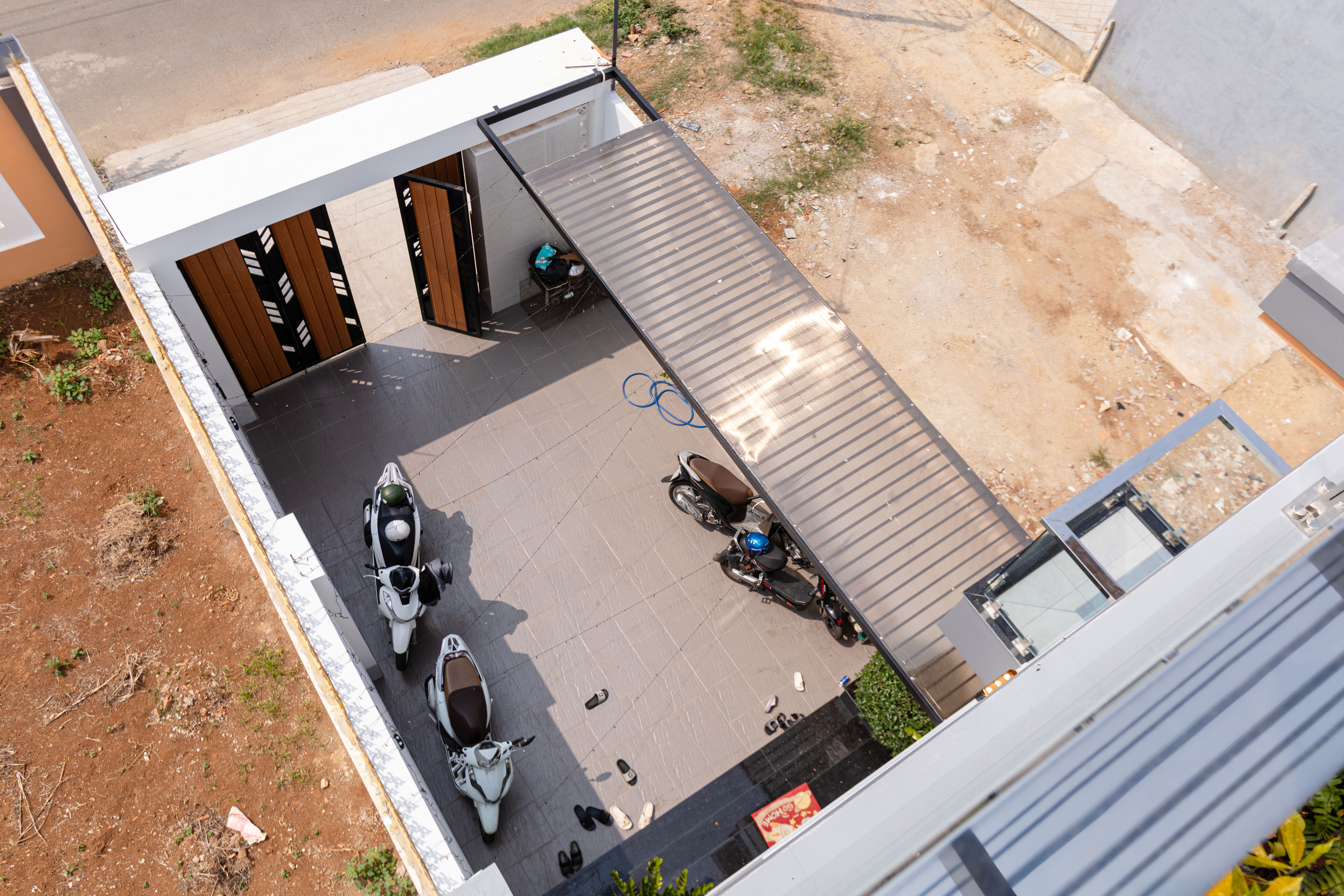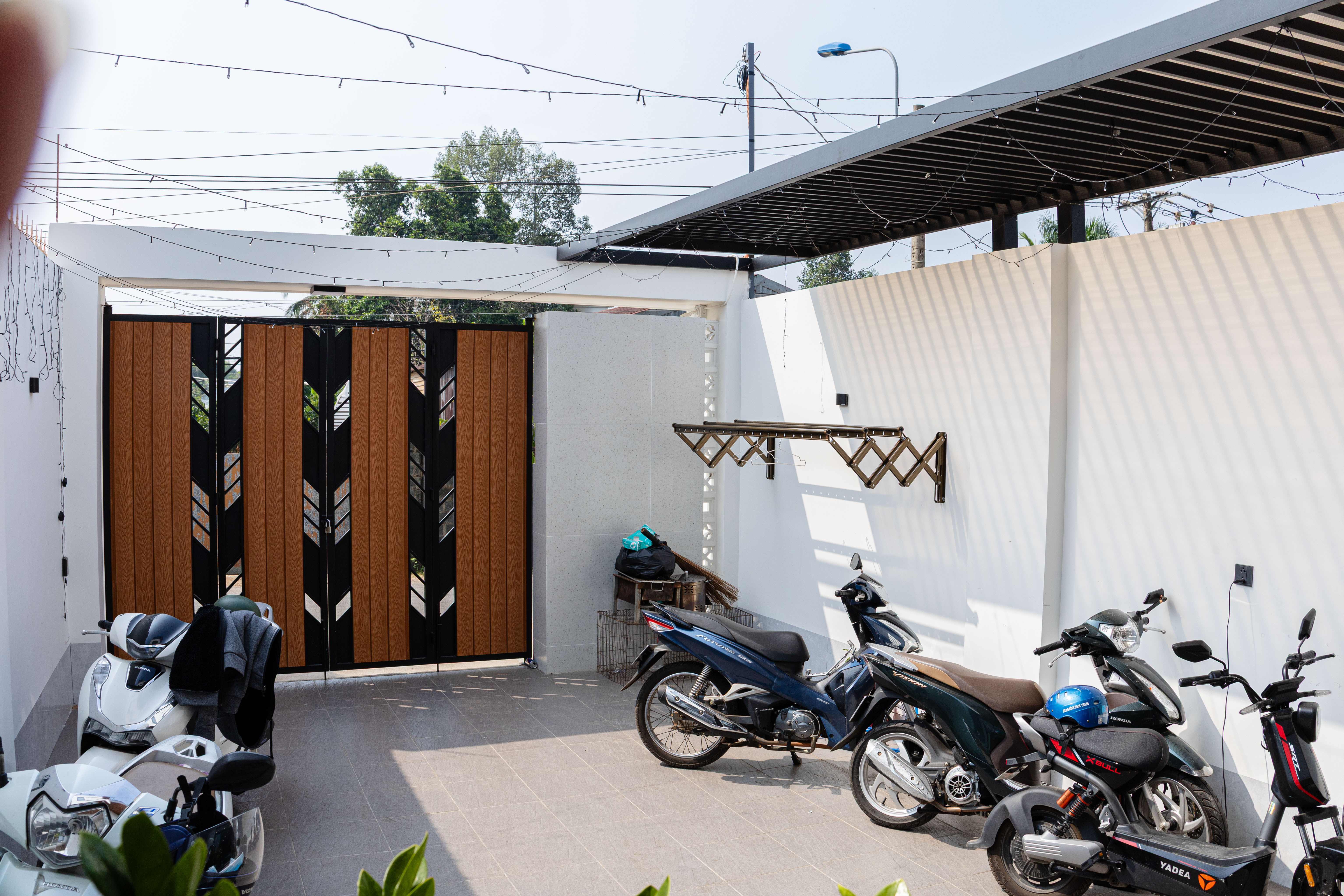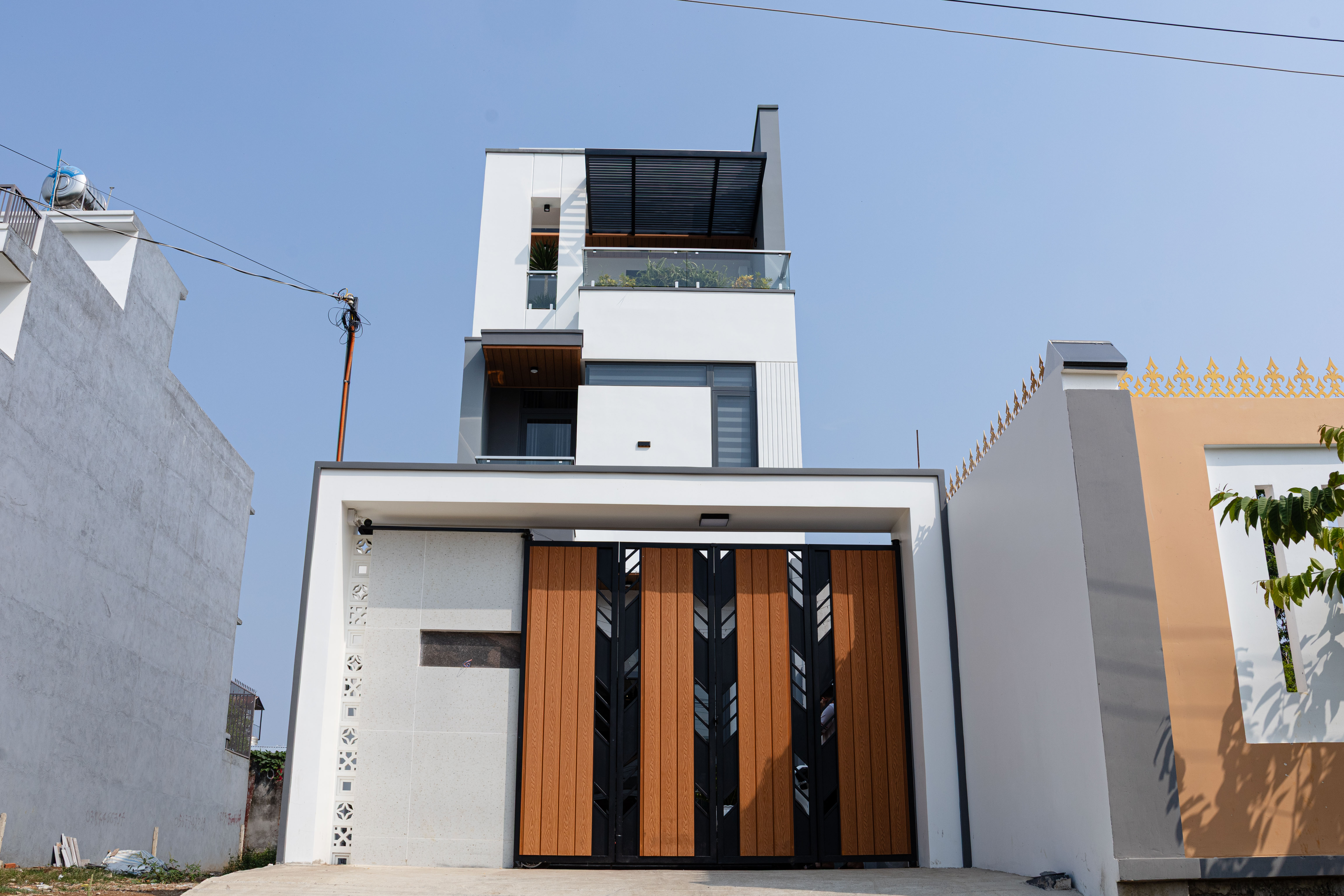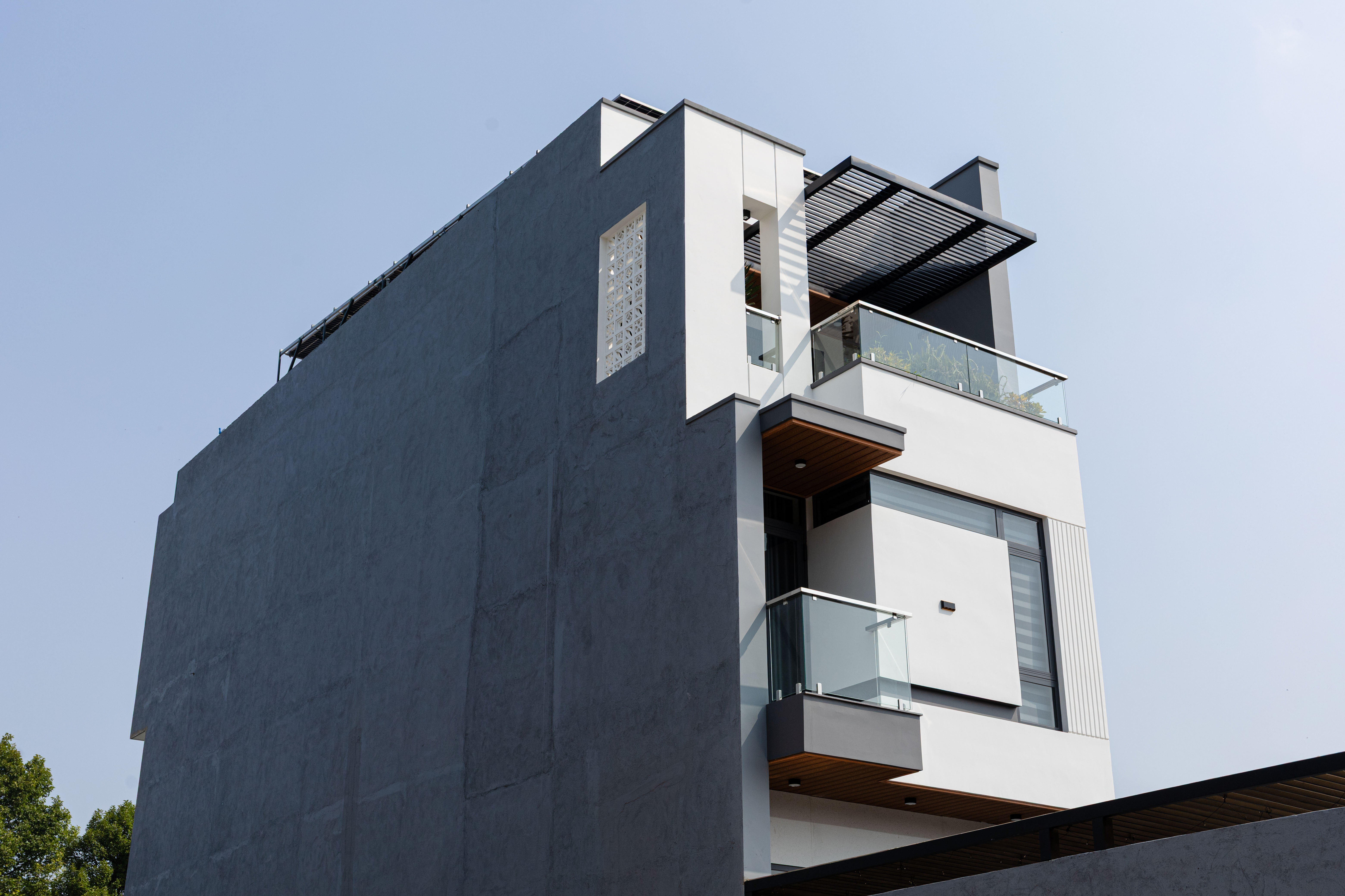 Ngôi nhà gây ấn tượng bởi hình khối vuông vức, sự kết hợp hài hòa giữa tone màu trắng - xám chủ đạo và các mảng xanh ban công tươi mát. Đây là giải pháp hoàn hảo cho không gian sống tiện nghi, thoáng đãng tại các khu đô thị.