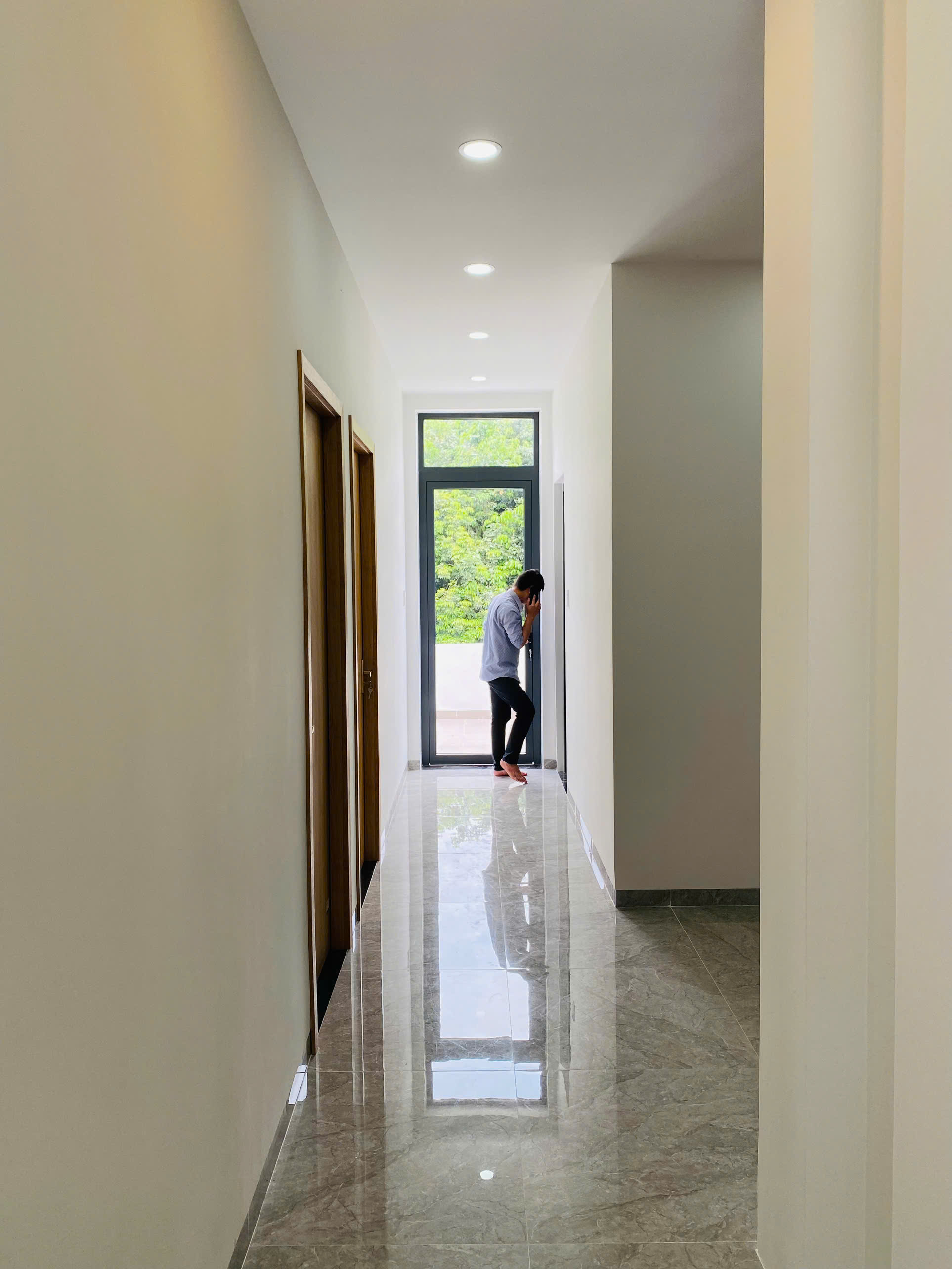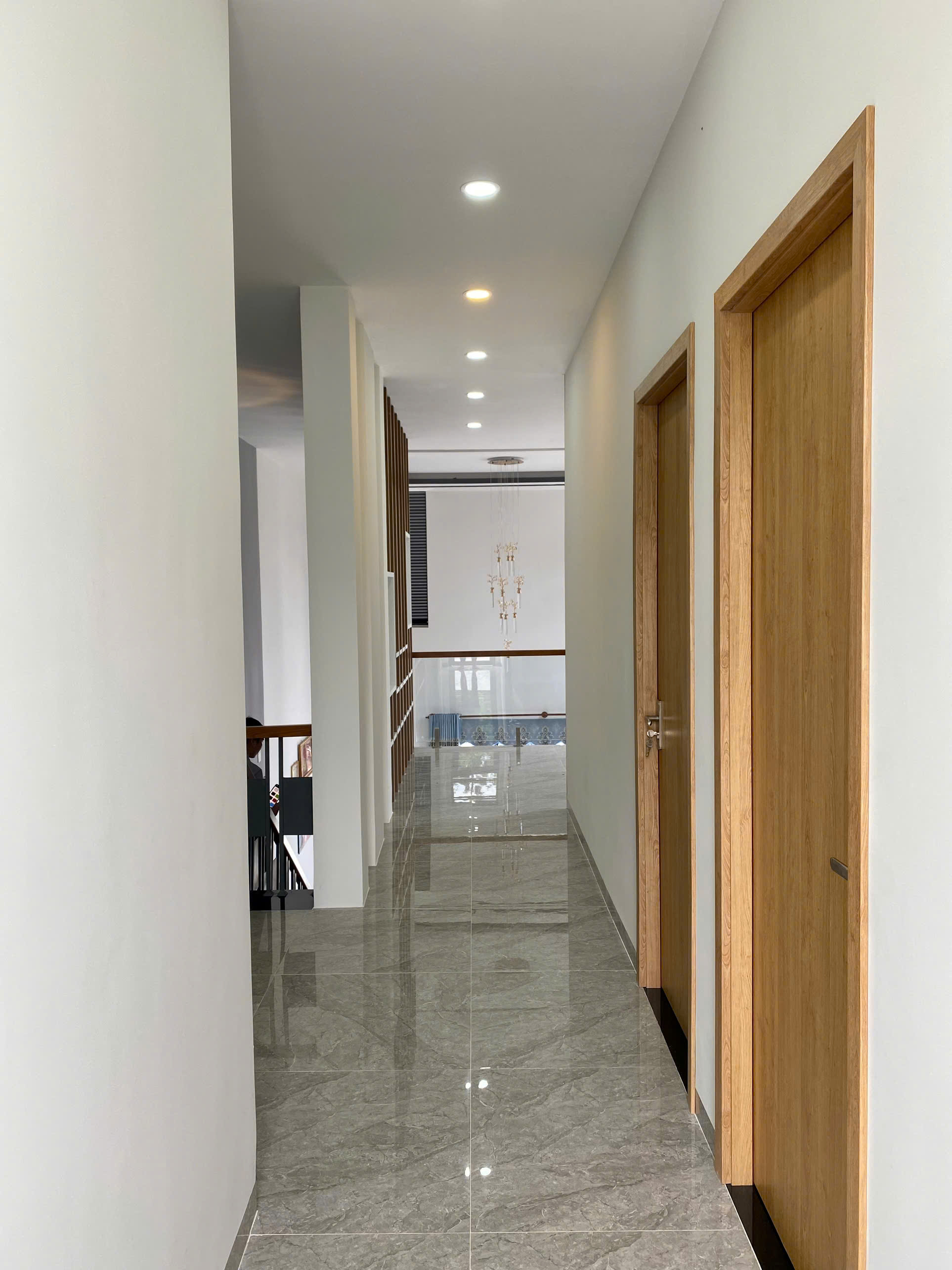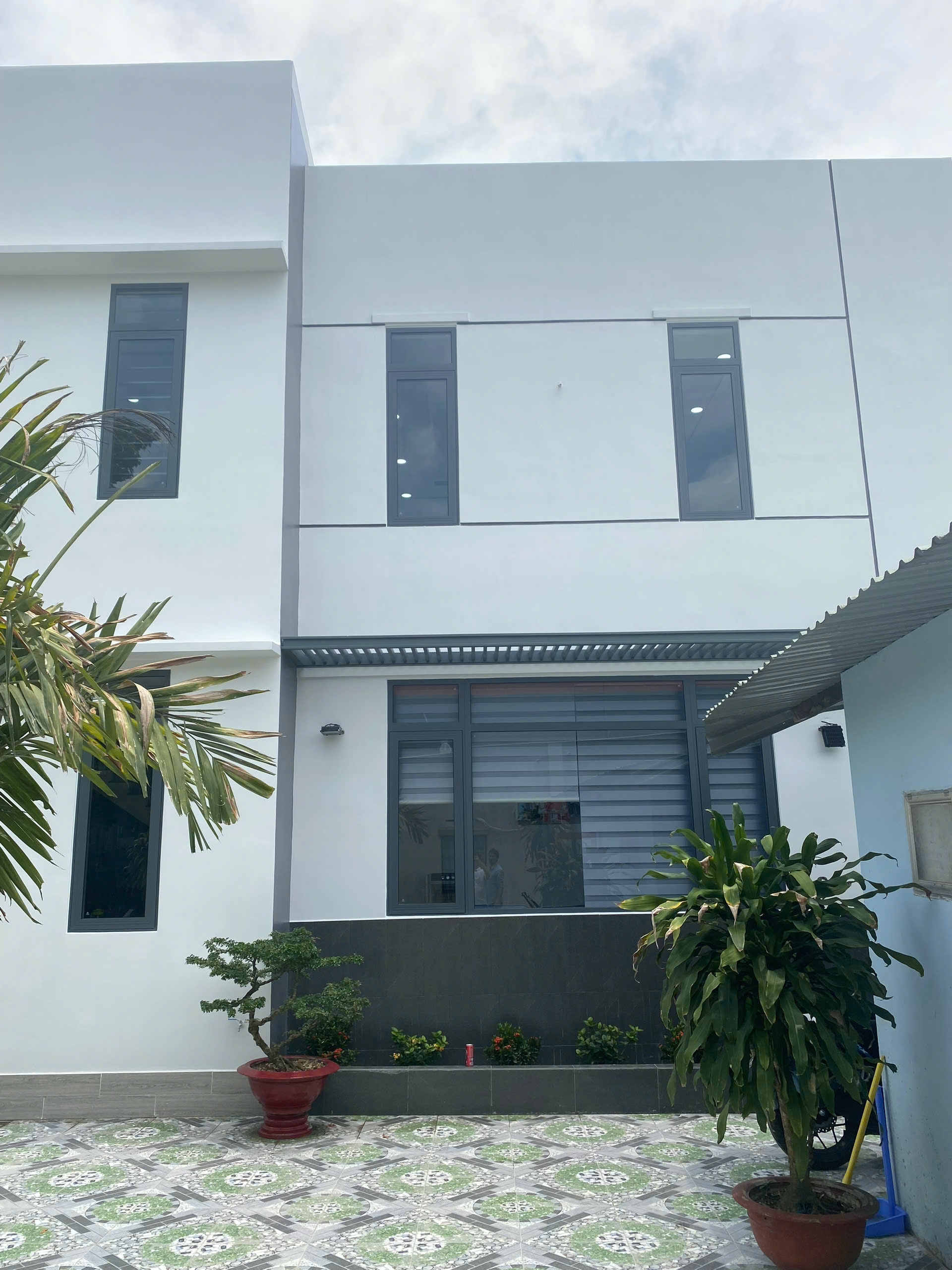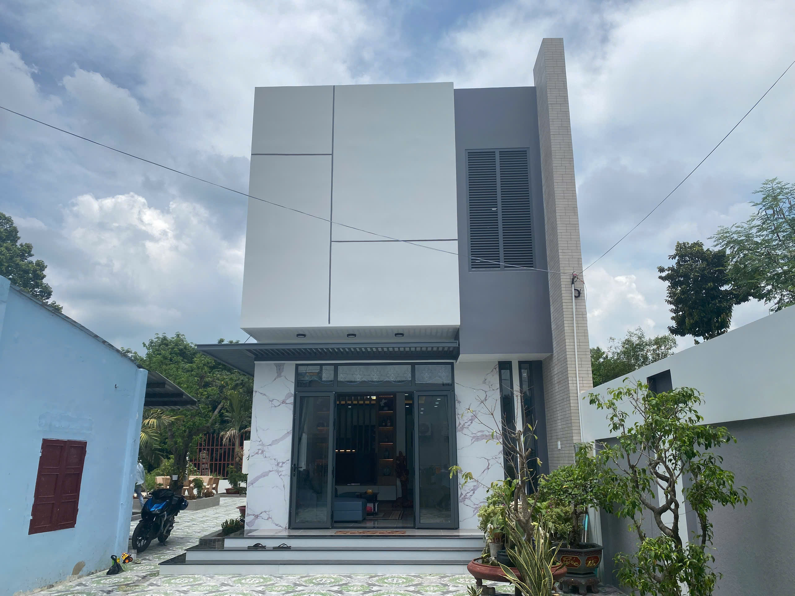 Vật liệu: Cửa nhôm kính Xingfa lấy sáng tối đa, mặt tiền trệt ốp đá vân mây sang trọng.