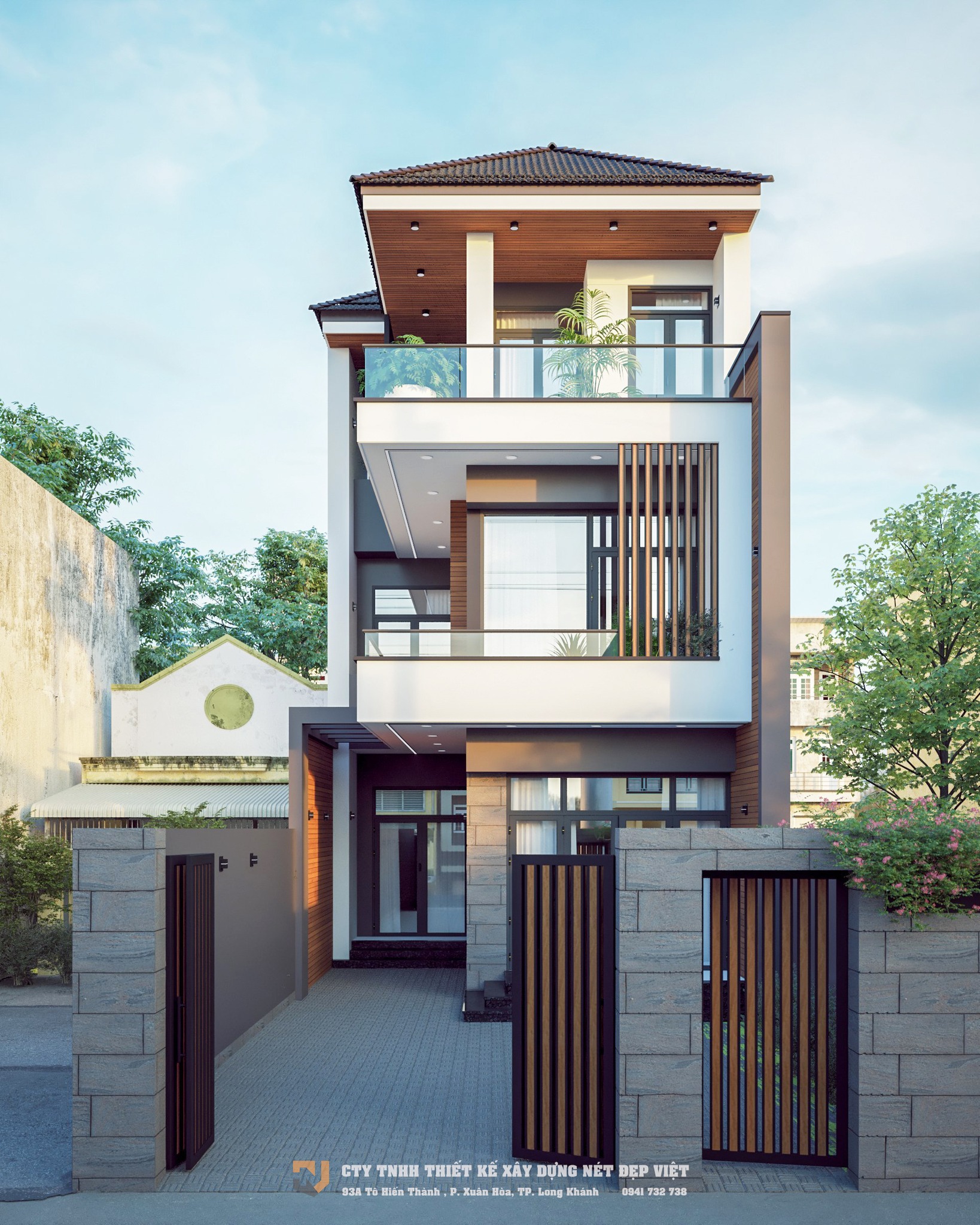 Làm thế nào để xây dựng một không gian sống rộng rãi, đẳng cấp trên diện tích đất nhà phố (nhà ống) đặc trưng? Mẫu thiết kế nhà phố 3 tầng mái Nhật mang phong cách hiện đại do Nét Đẹp Việt thực hiện tại TP. Long Khánh chính là lời giải hoàn hảo, mang đến một diện mạo đầy kiêu hãnh và khác biệt.