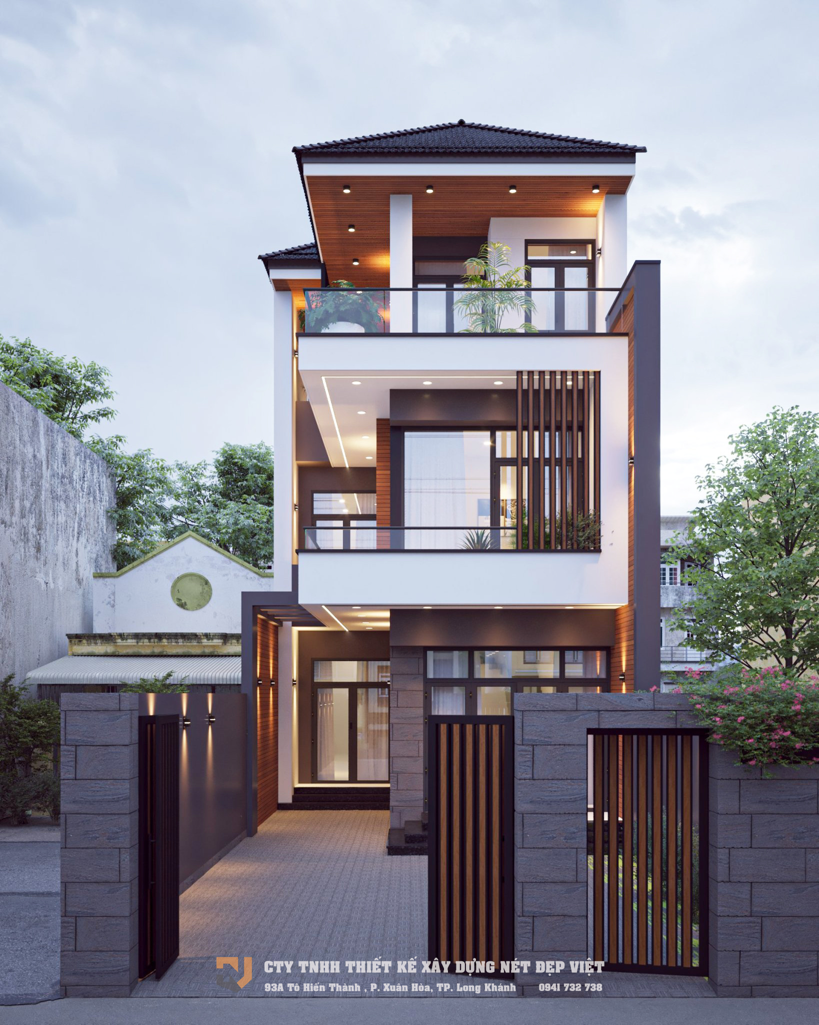 Làm thế nào để xây dựng một không gian sống rộng rãi, đẳng cấp trên diện tích đất nhà phố (nhà ống) đặc trưng? Mẫu thiết kế nhà phố 3 tầng mái Nhật mang phong cách hiện đại do Nét Đẹp Việt thực hiện tại TP. Long Khánh chính là lời giải hoàn hảo, mang đến một diện mạo đầy kiêu hãnh và khác biệt.