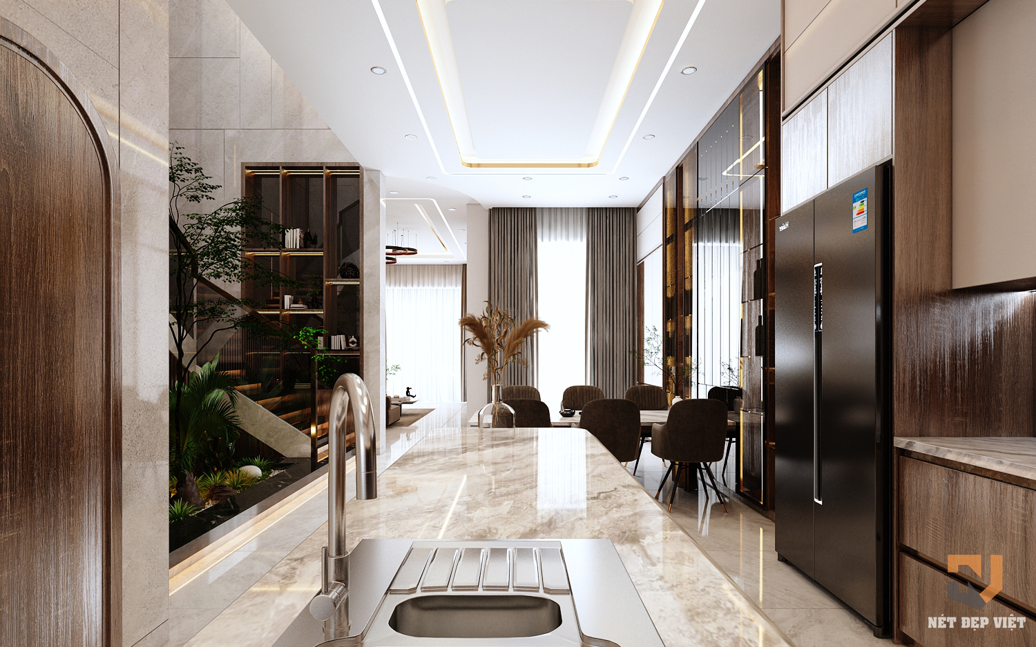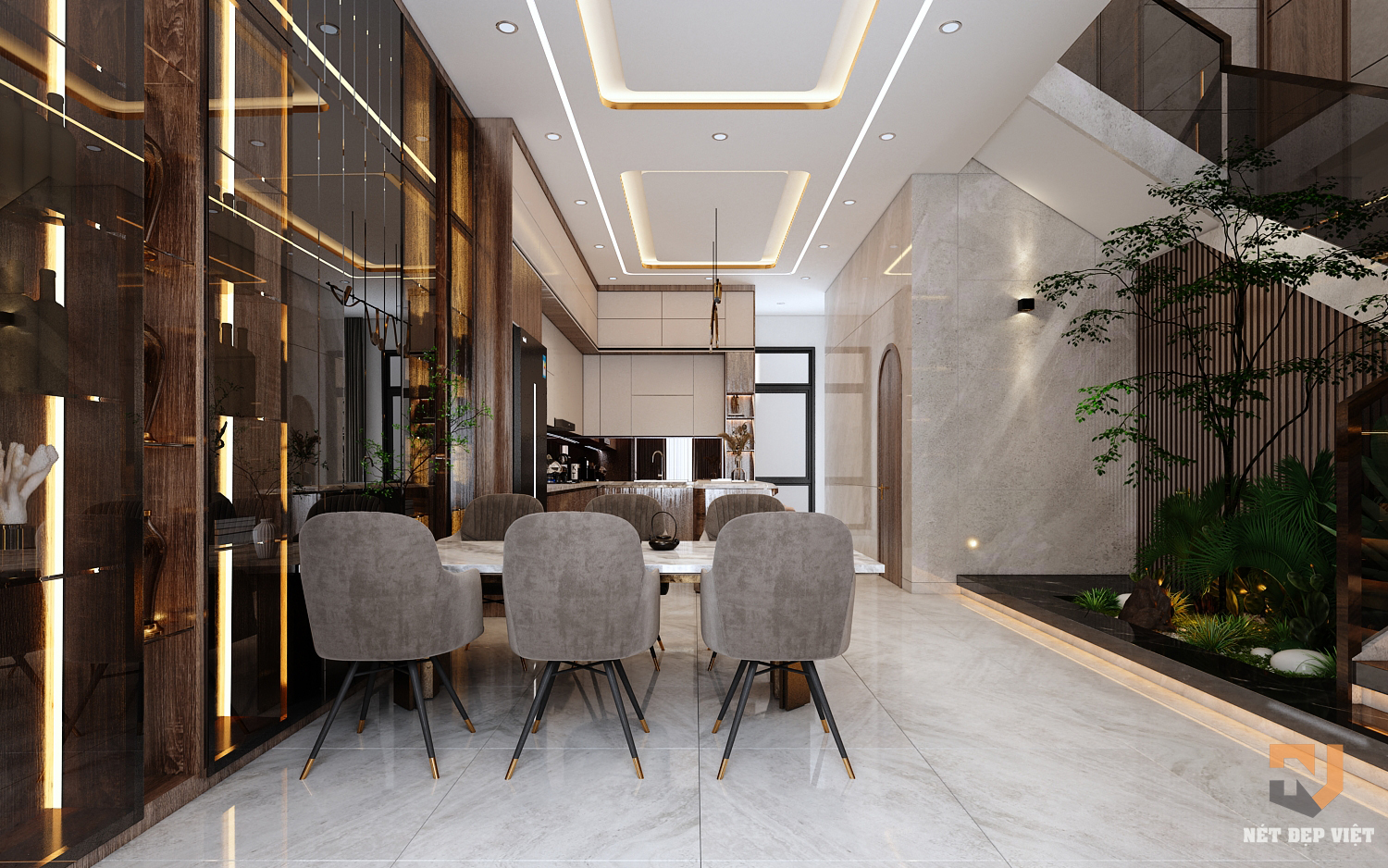 Vấn đề lớn nhất của nhà phố là thiếu sáng và bí bách. Tuy nhiên, với kinh nghiệm thiết kế tại Long Khánh, Nét Đẹp Việt đã xử lý triệt để bài toán này: