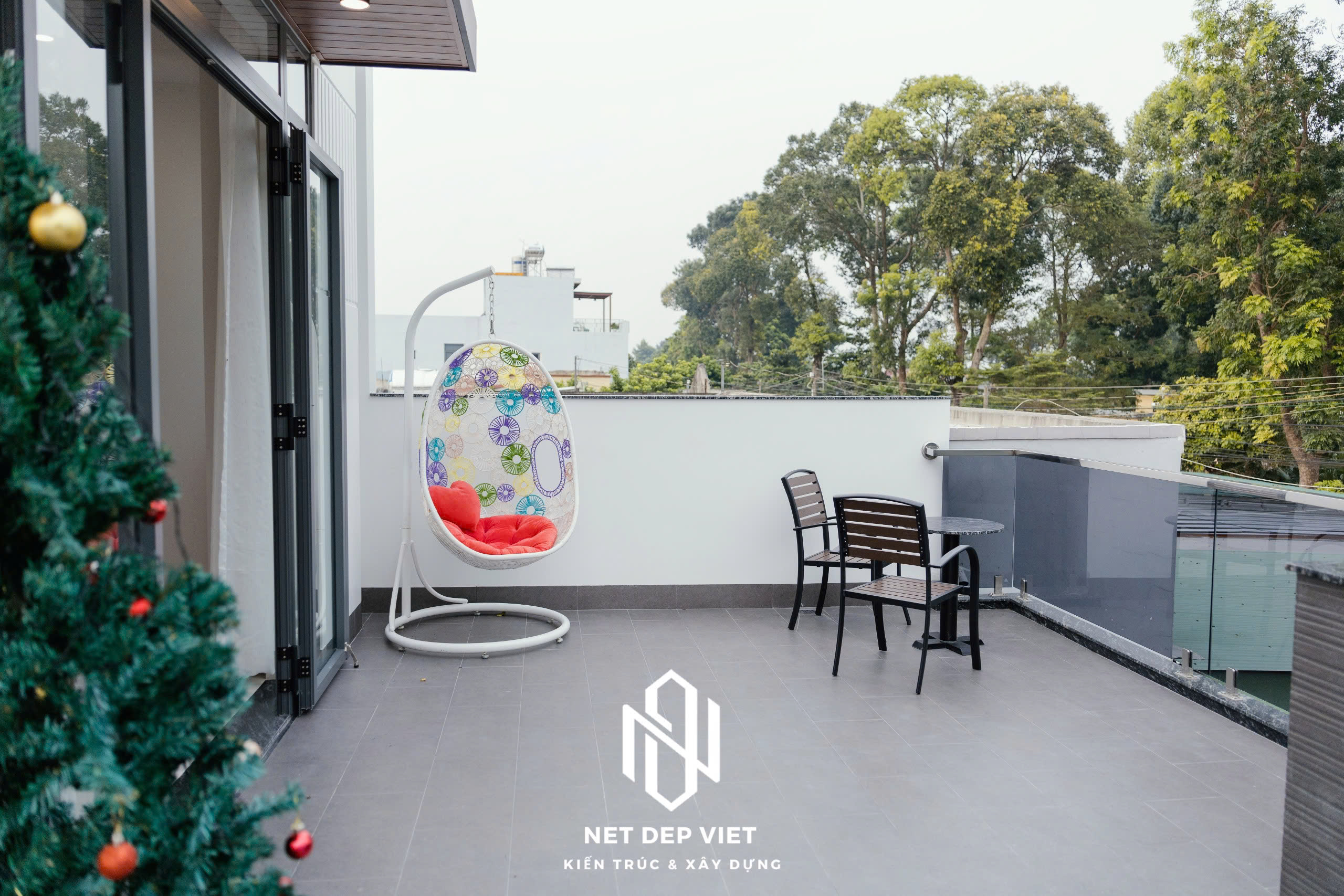Không gian xanh: Ban công tầng 2 tích hợp cây xanh tạo cảm giác gần gũi với thiên nhiên.