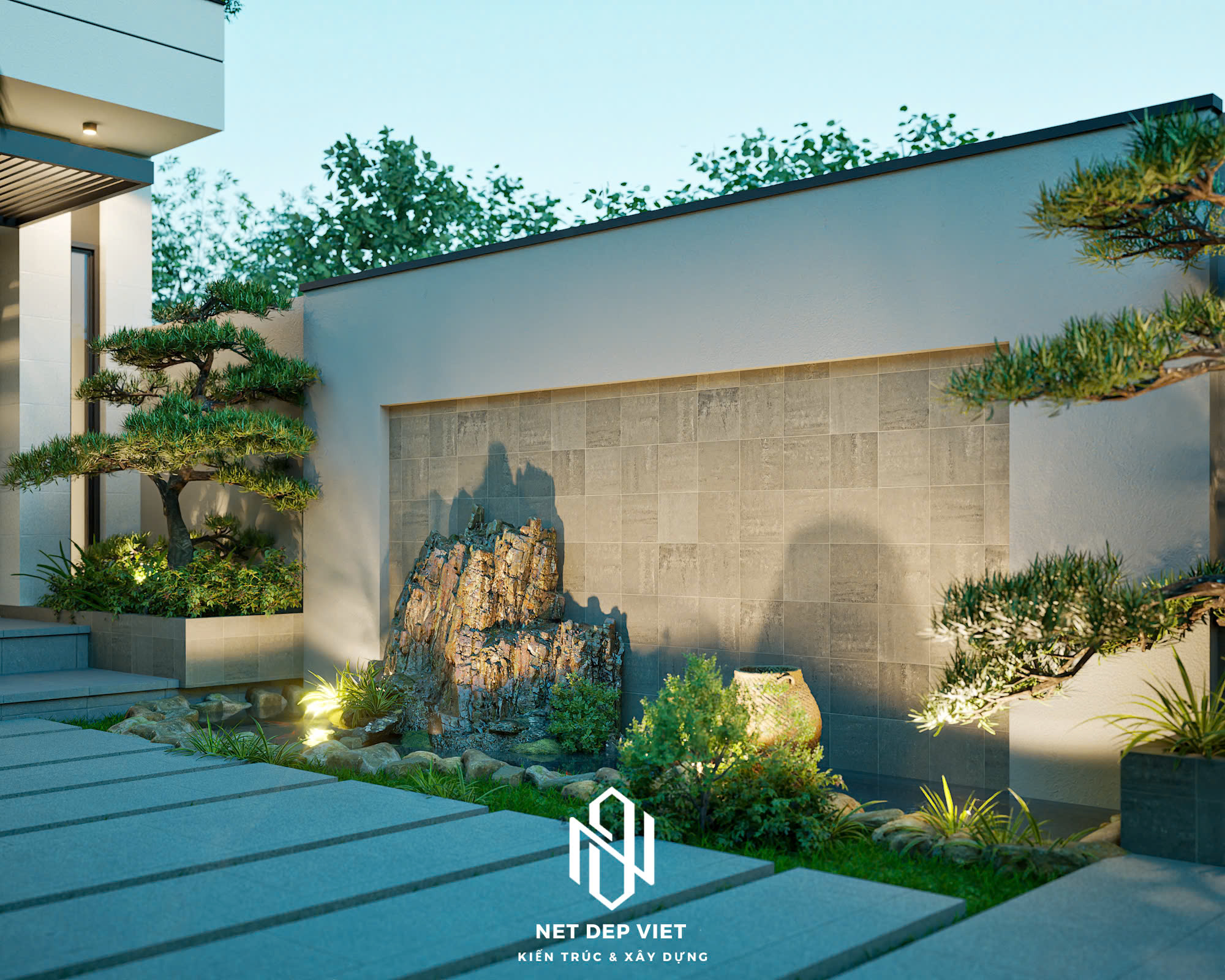 Không gian xanh: Mặt tiền được tích hợp khéo léo với tiểu cảnh, hòn non bộ và cây cảnh phong thủy, mang đến luồng sinh khí tươi mát và sự thư thái cho gia chủ.